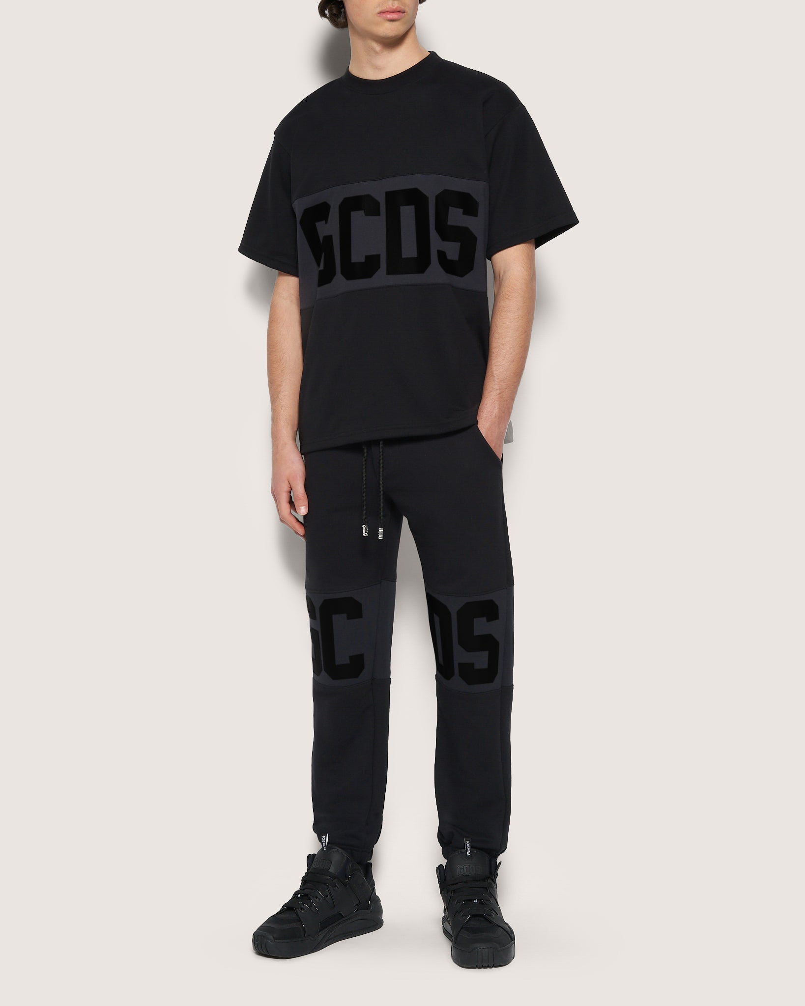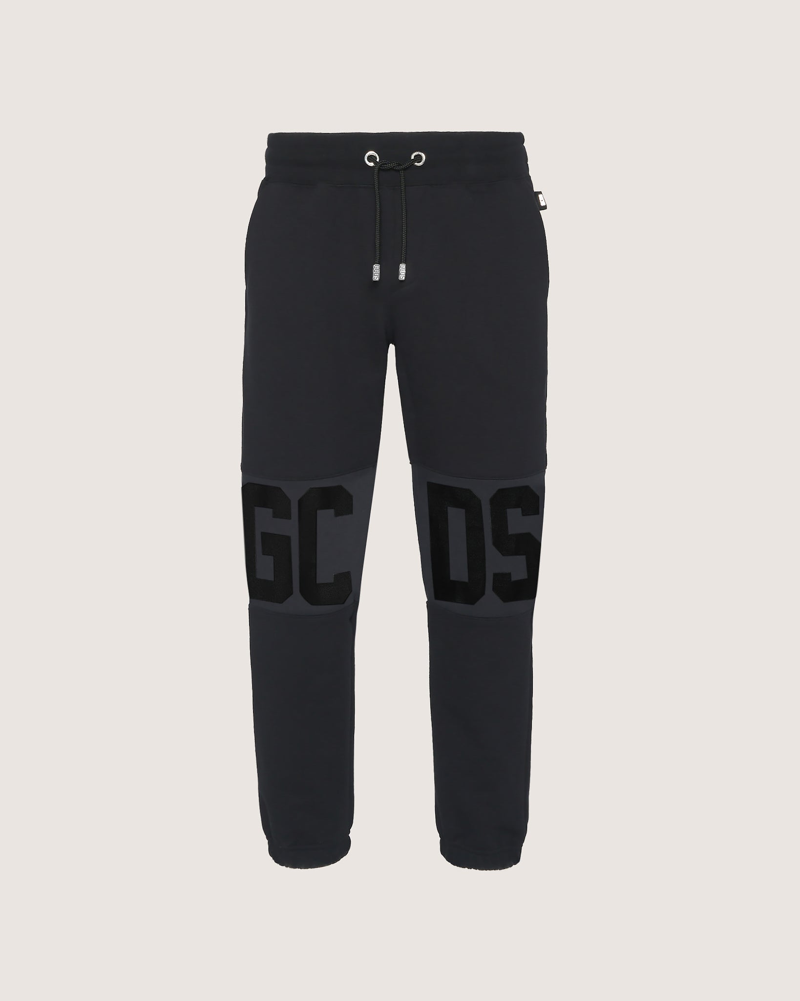Cotton GCDS sweatpants with tone-on-tone inlaid logo band at knee height at front and back. Slash pockets, elastic waistband and leg bottoms. Regular fit.