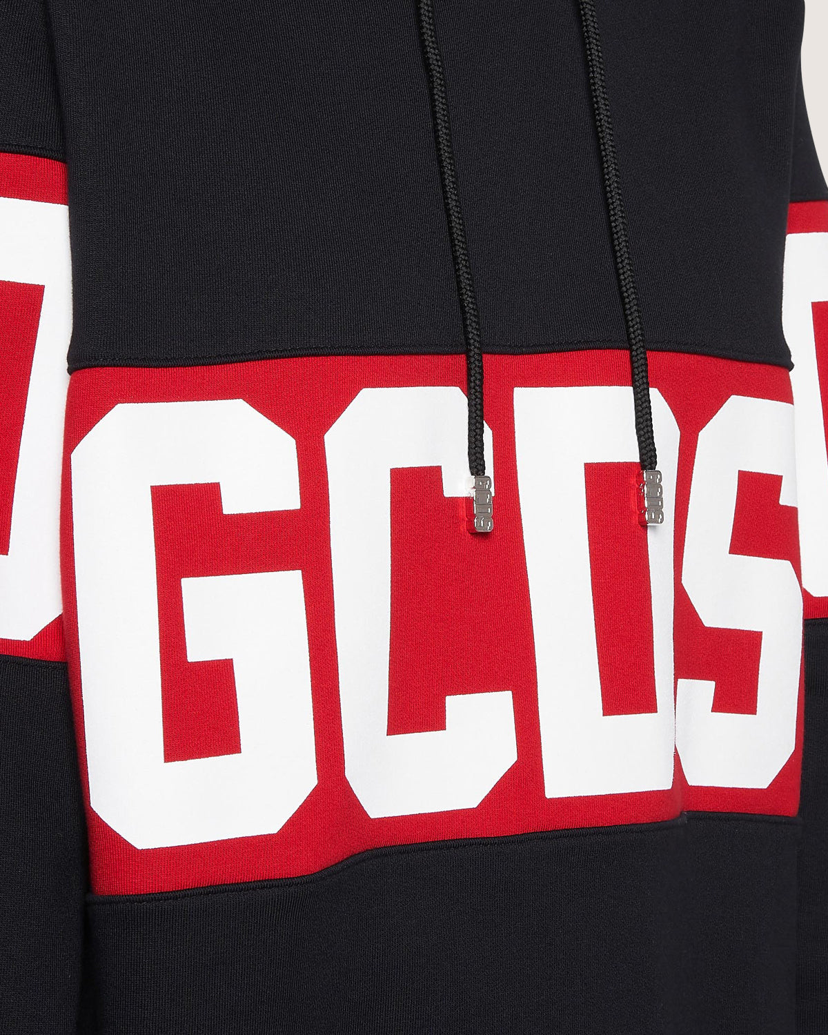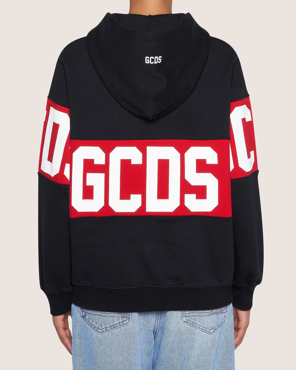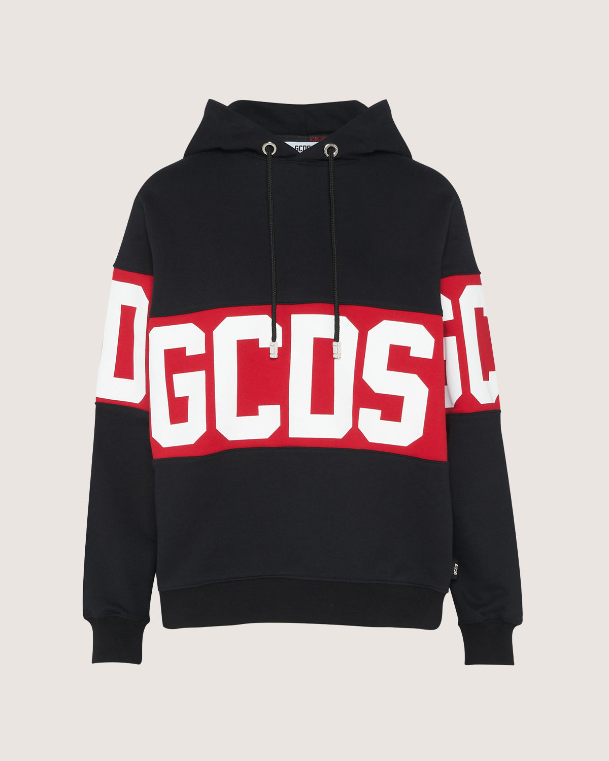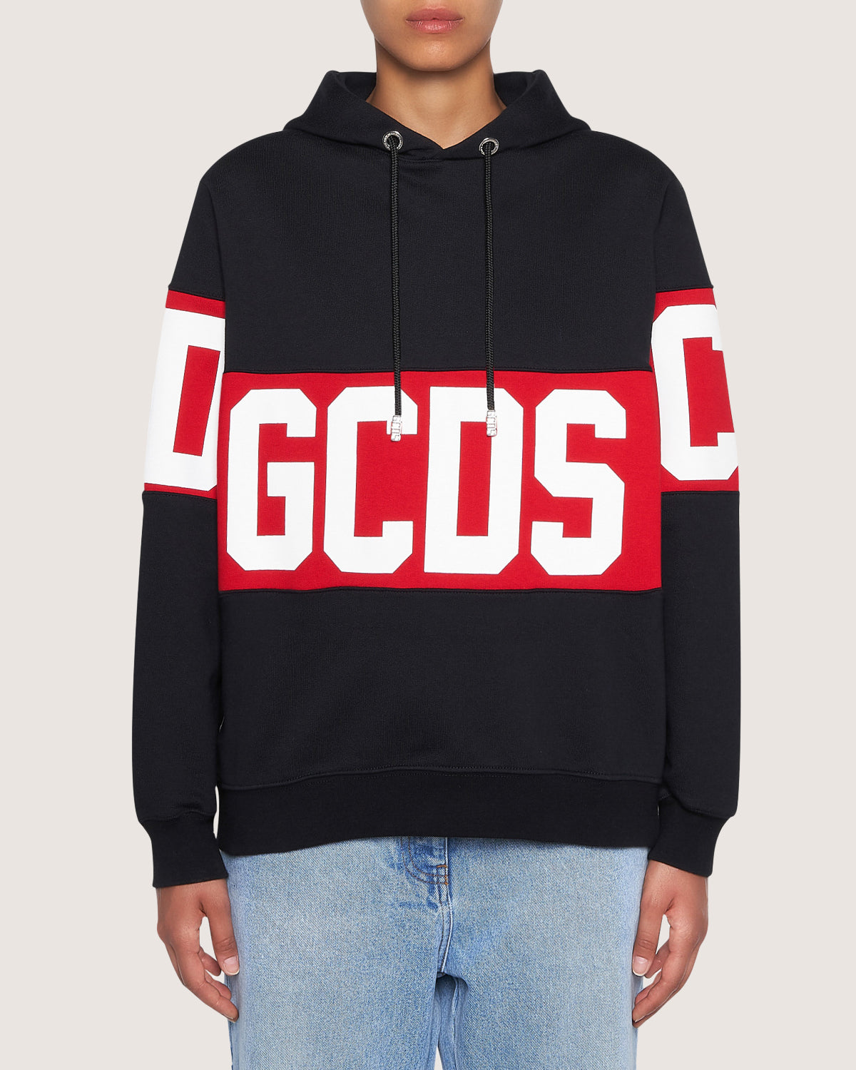 Oversize hoodie with long sleeves and printed logo band.