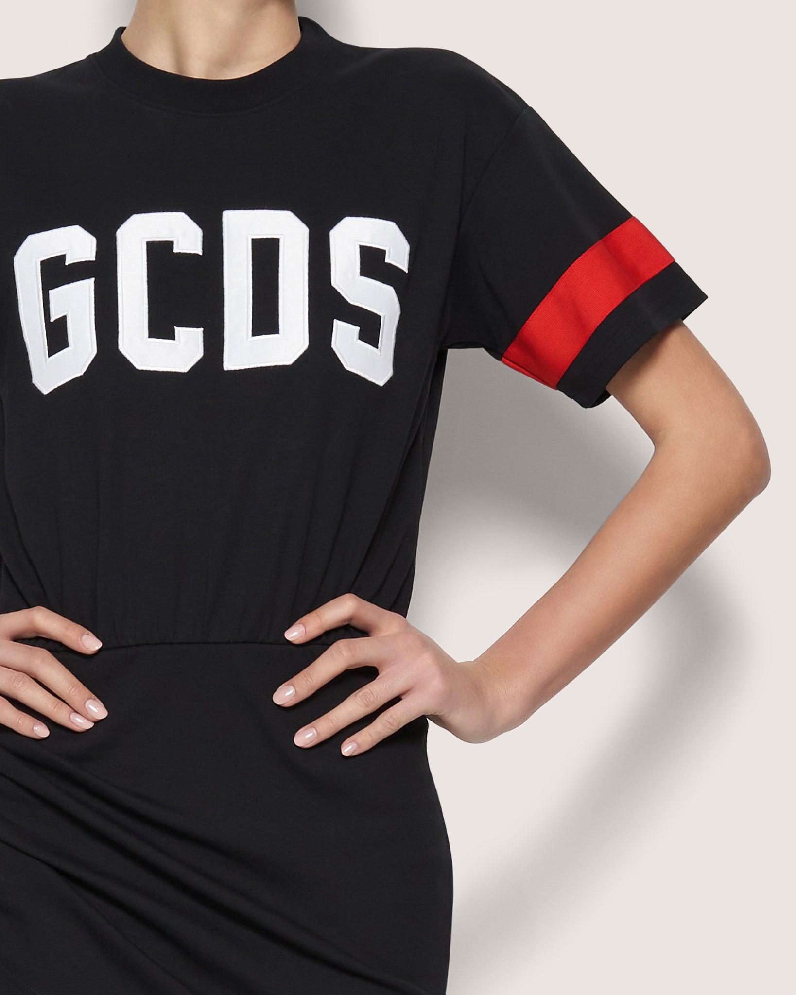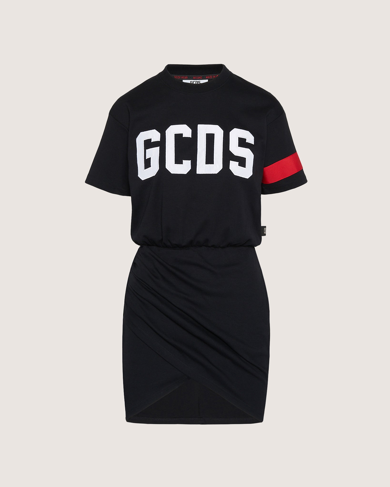 Cotton dress with iconic regular cut t-shirt combined with a mini drapped skirt on the right side.