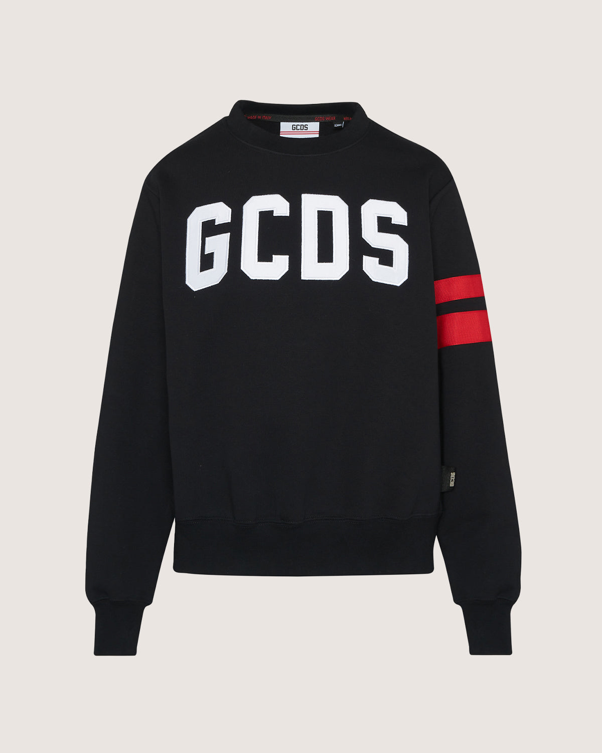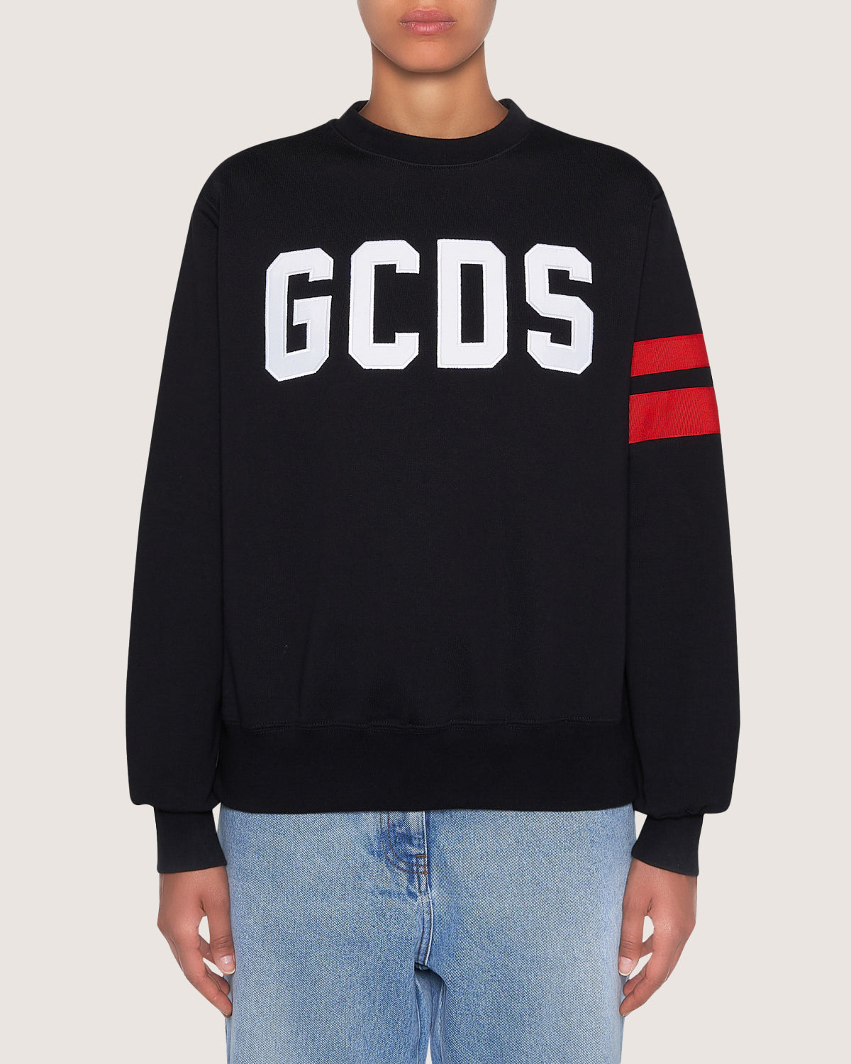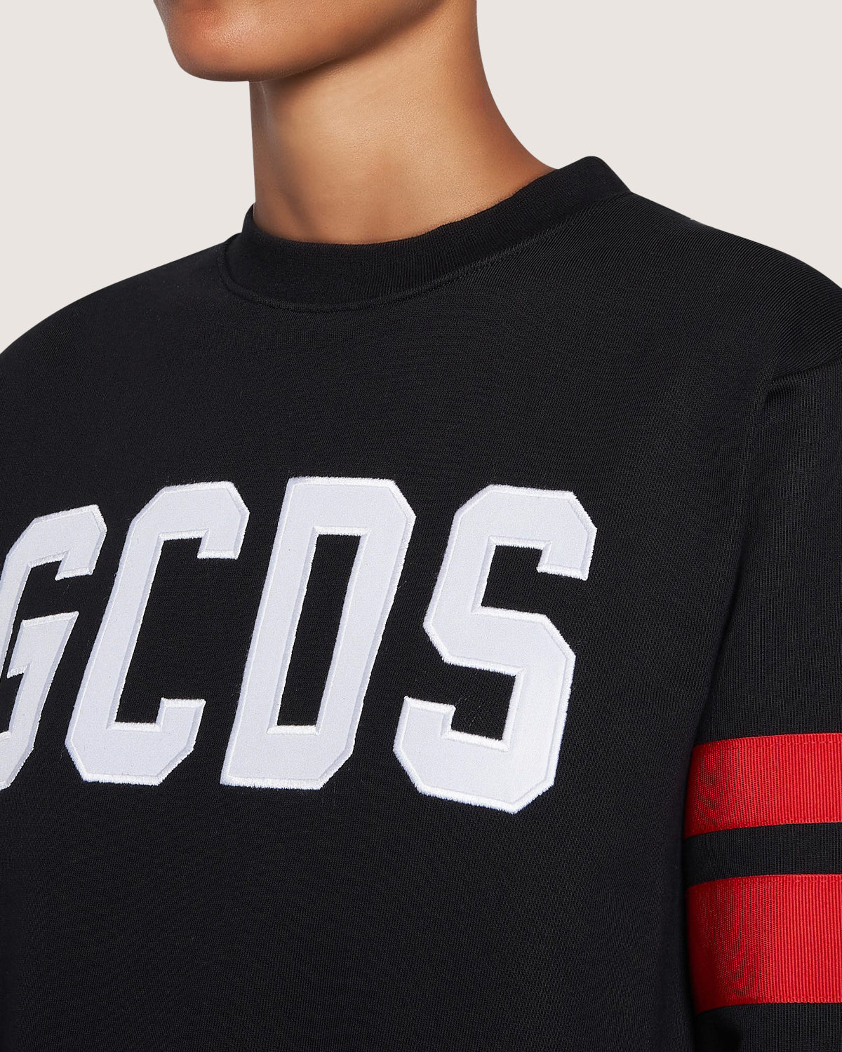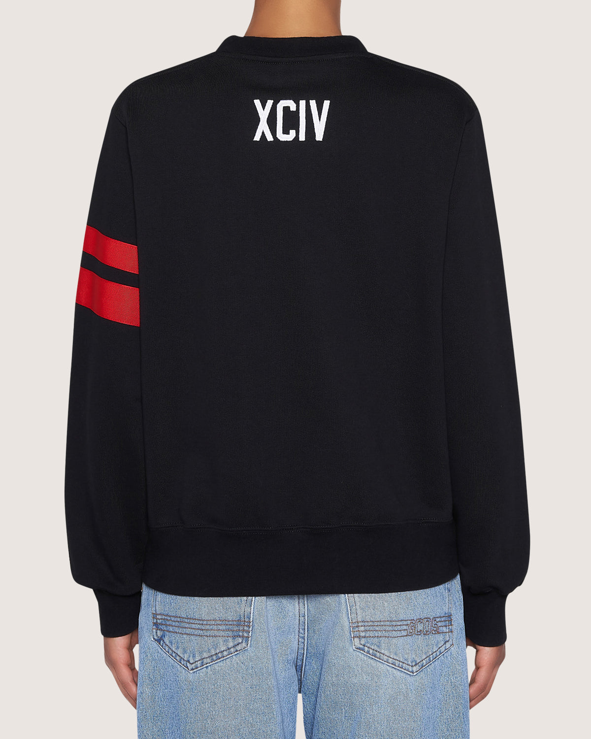 Sweatshirt with contrasting GCDS logo on front center, two contrasting bands on left arm and XCIV embroidery on the center back.