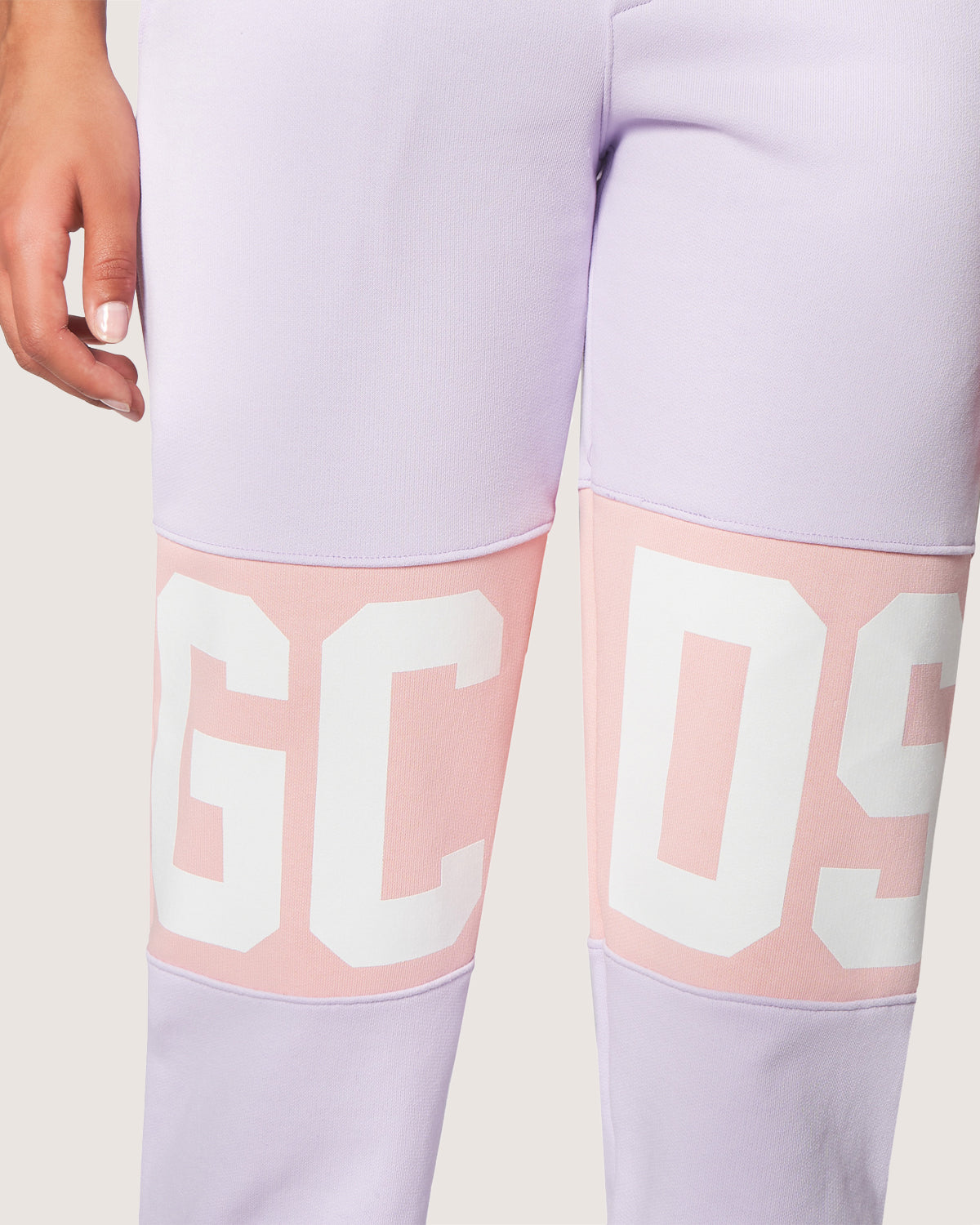 Trousers with GCDS logo band inlaid at front and back knee height.