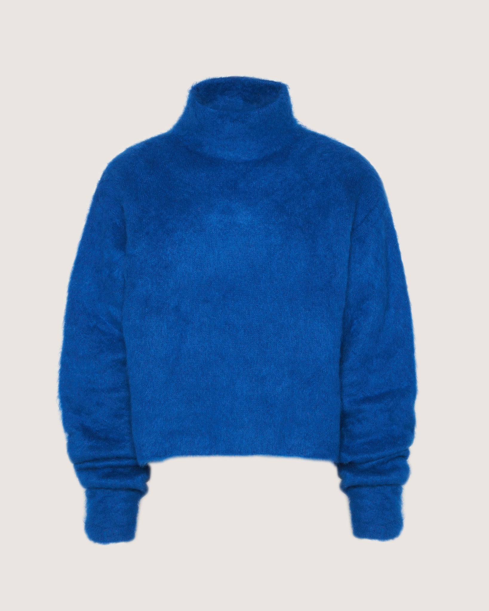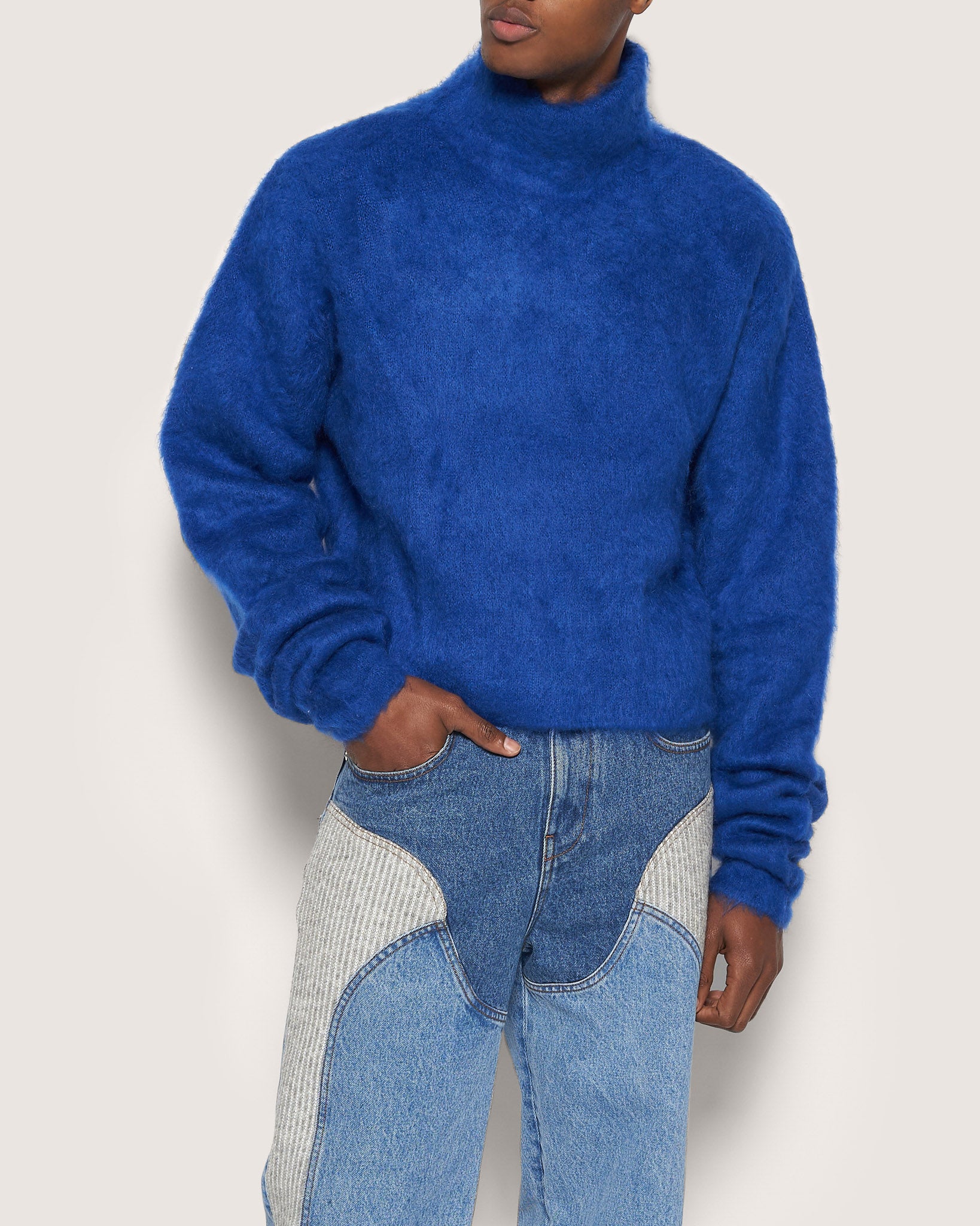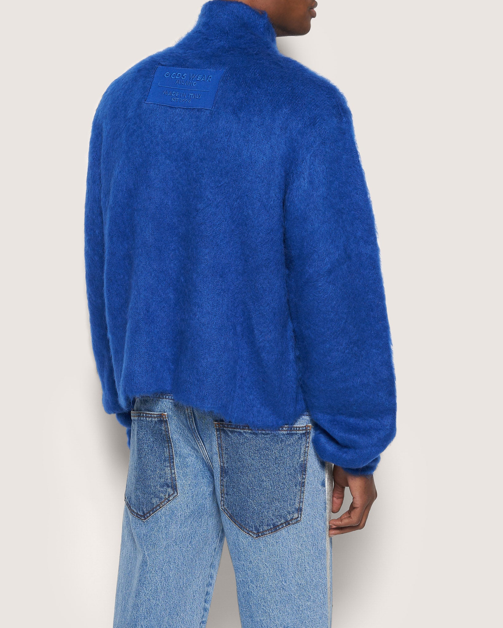 Long sleeve, mohair turtleneck GCDS sweater. On the back center, under the collar, embroidered knitwear logo patch. Square cut.
