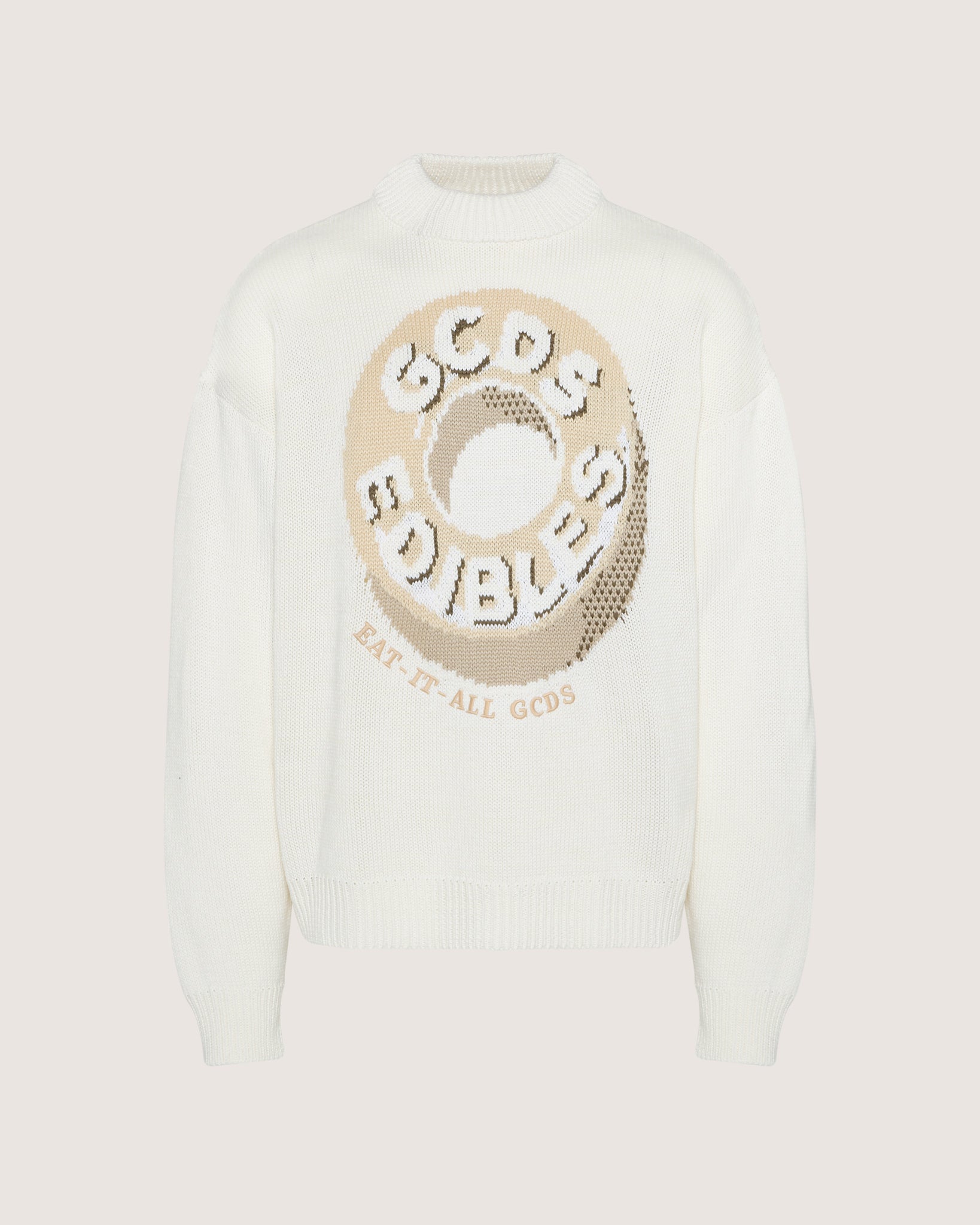 Jersey knit GCDS sweater with Edibles inlaid artwork on the front. Over-sized.