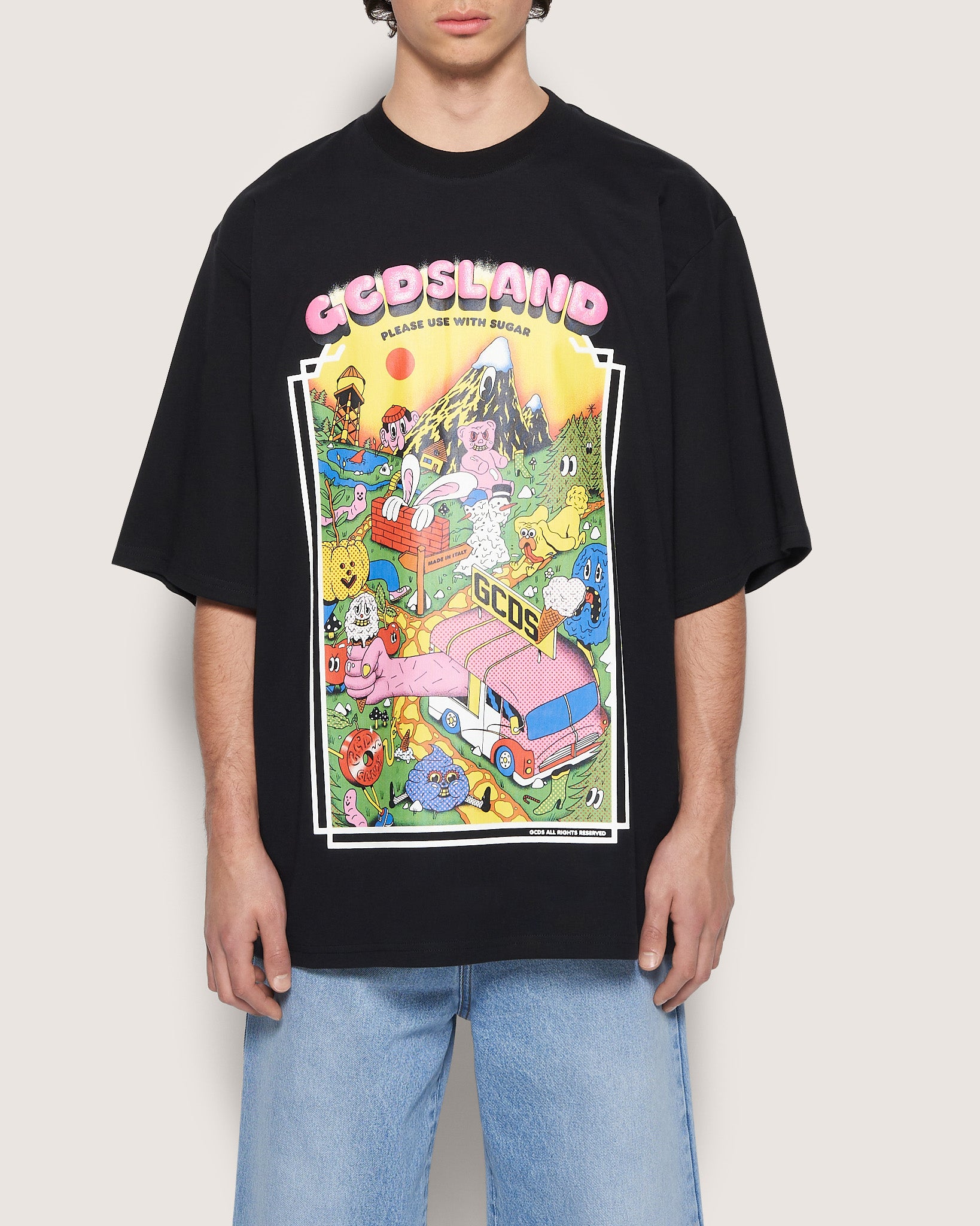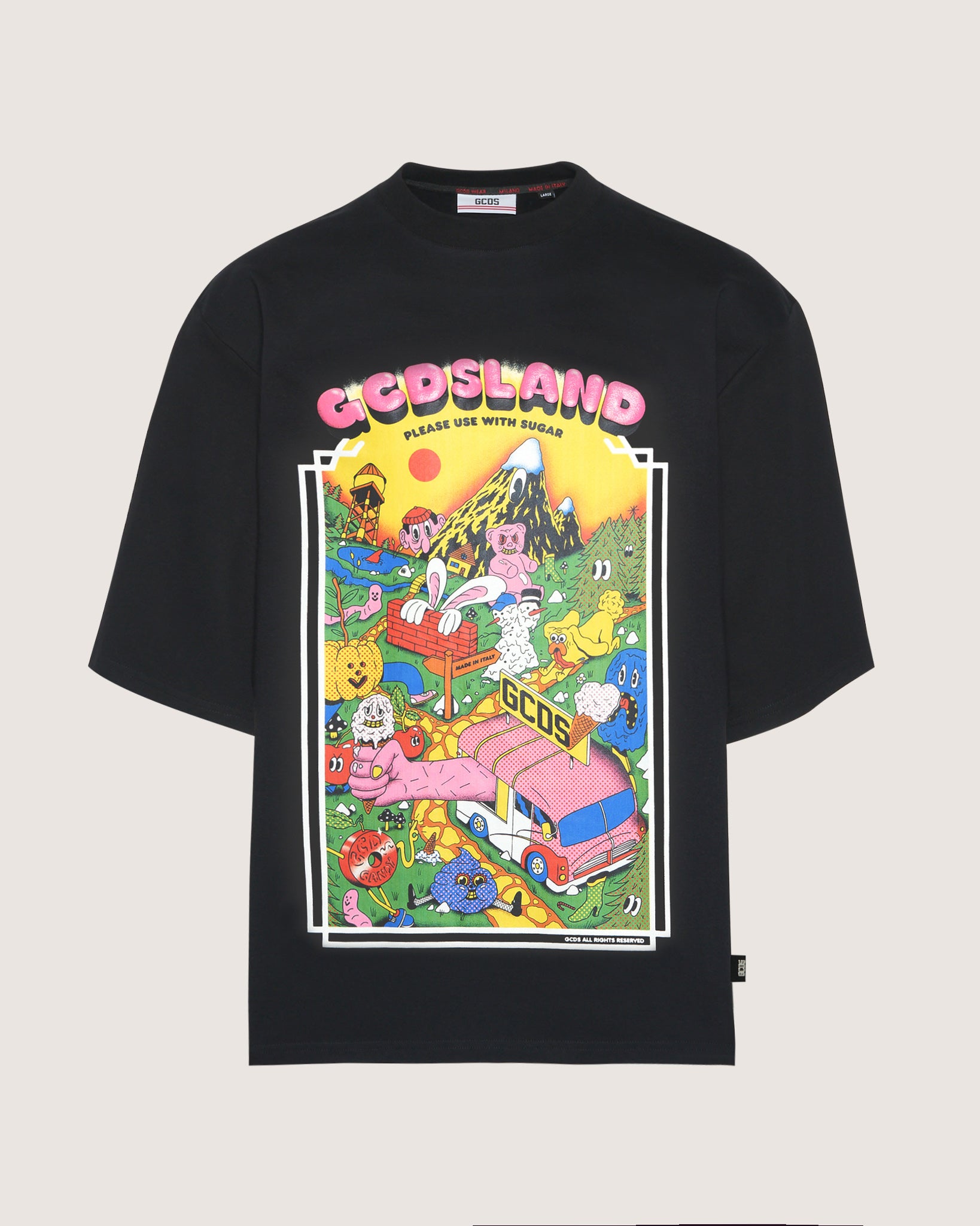 Cotton GCDS T-shirt. On the front, GCDSLAND artwork with puffy silkscreen logo. Over-sized.