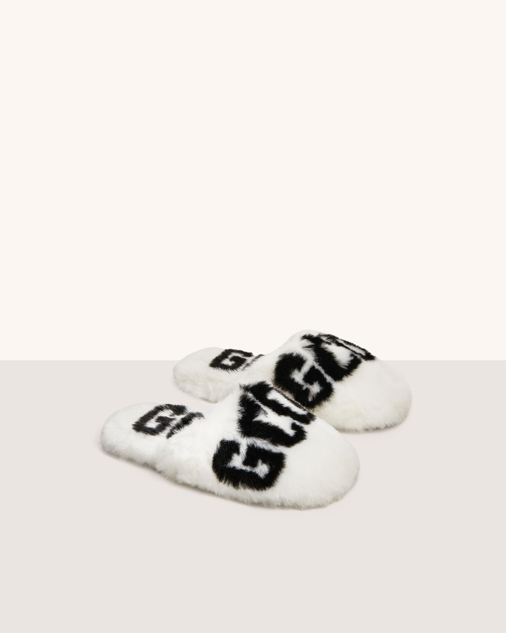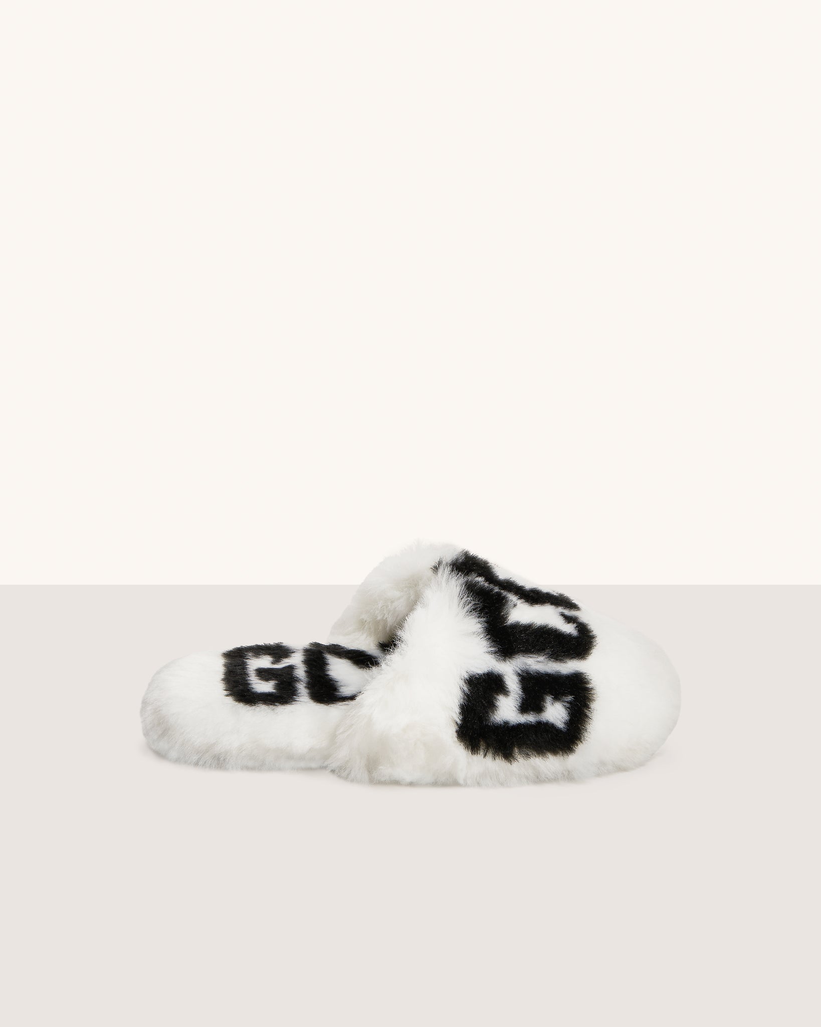 Faux fur slippers with GCDS all-over logo.