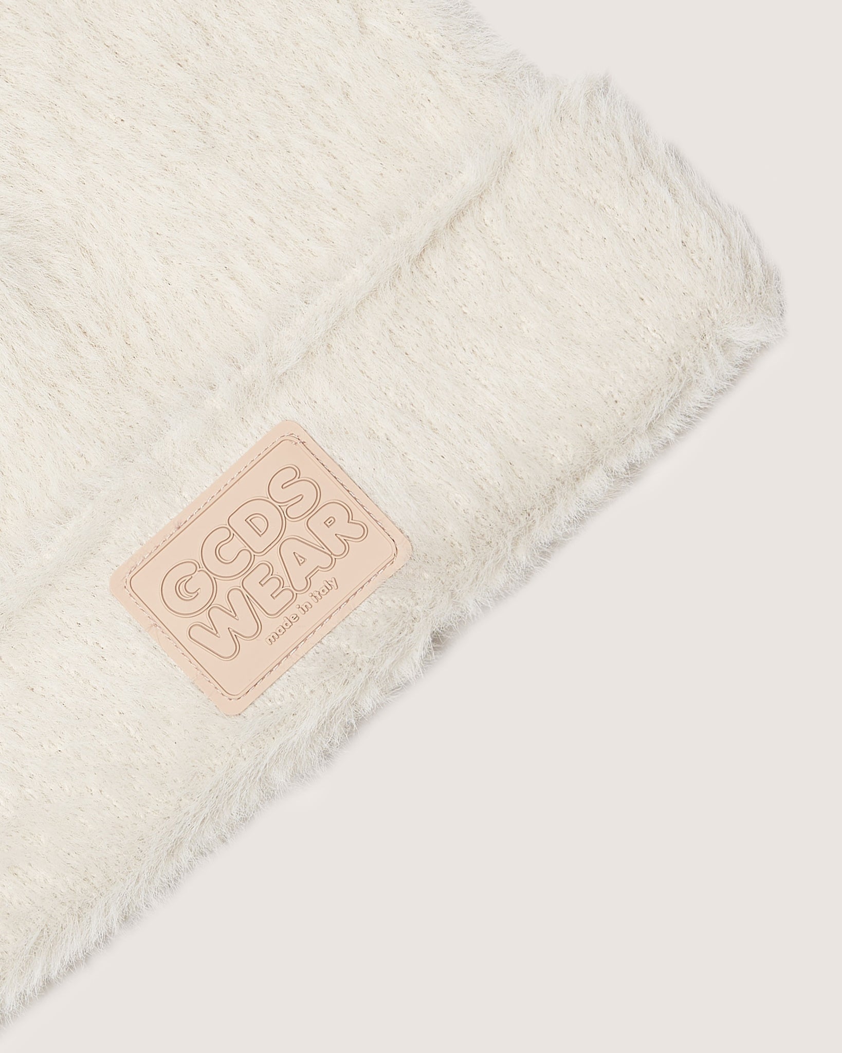 Knitted fury GCDS beanie. Silicon GCDS Cute logo patch on the front.