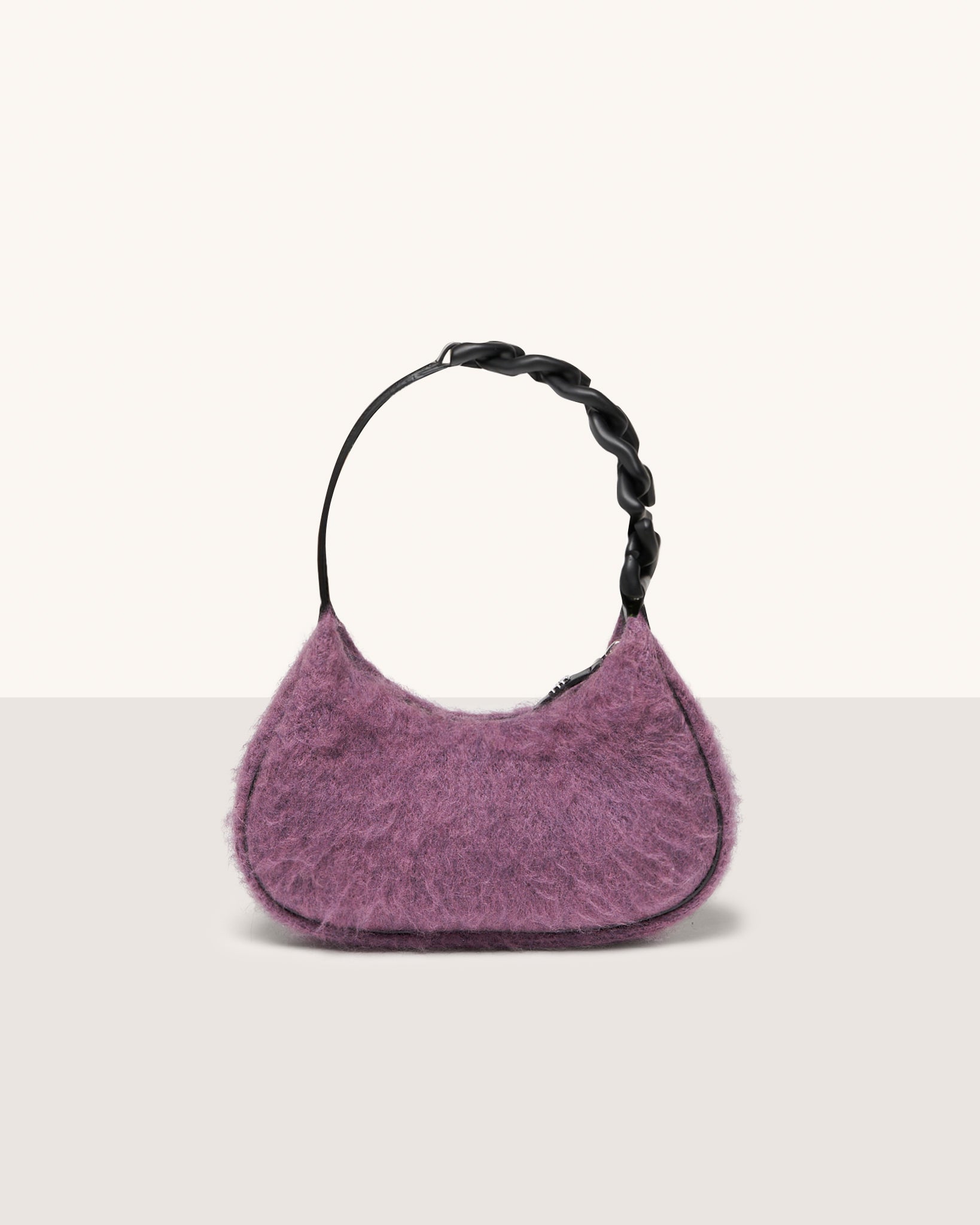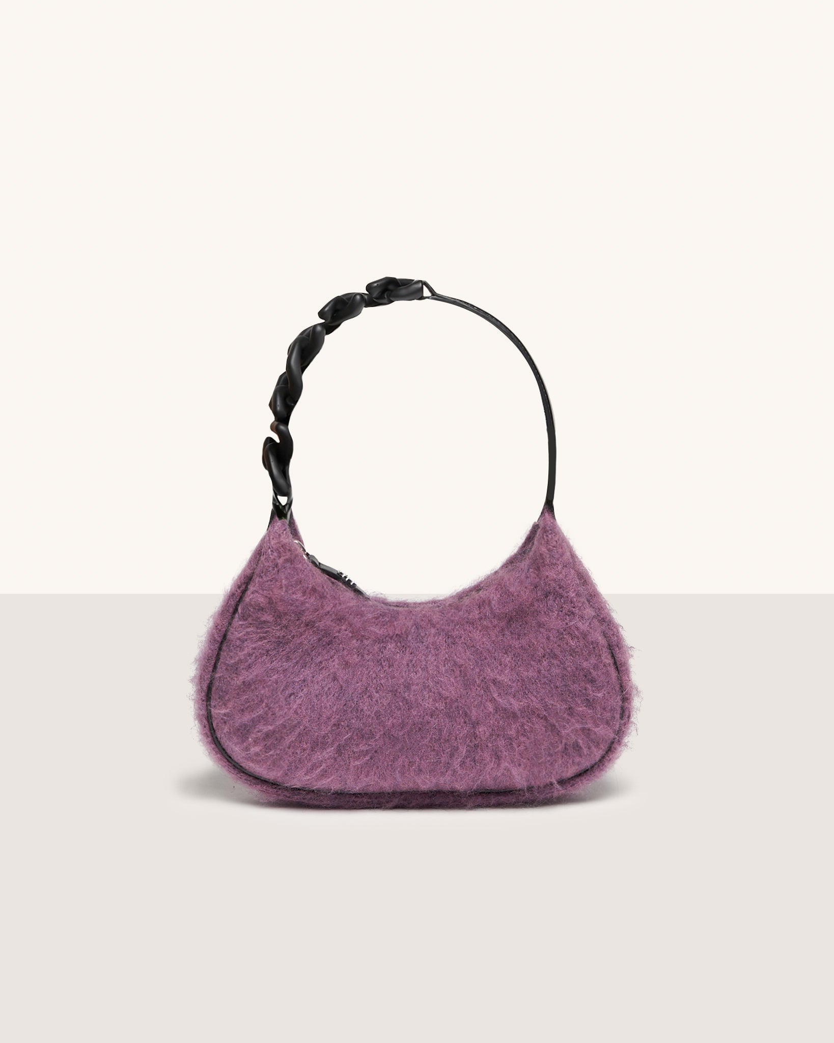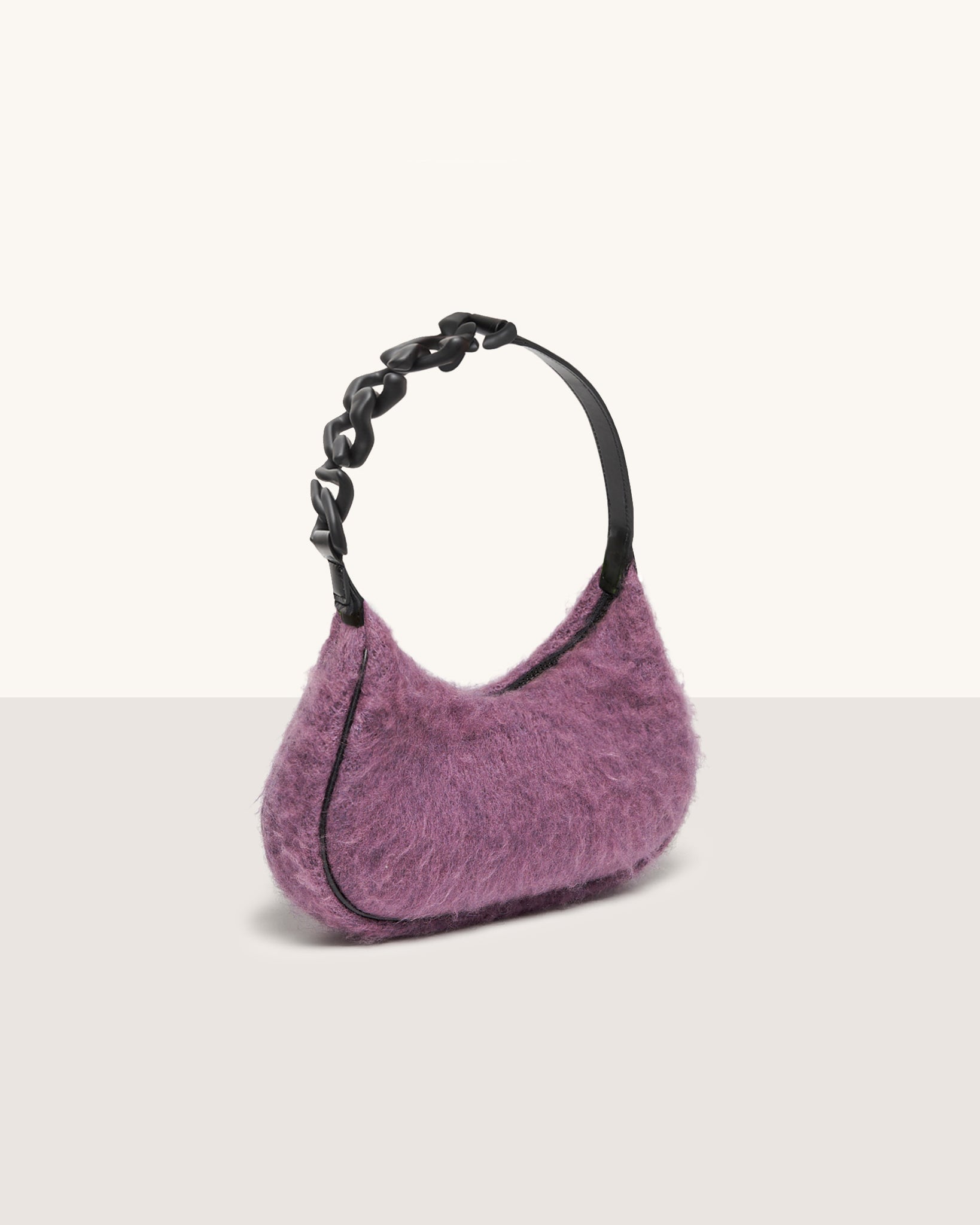GCDS baguette bag, with mohair needled mezzaluna, with maxi logo chain in ABS on the handle.