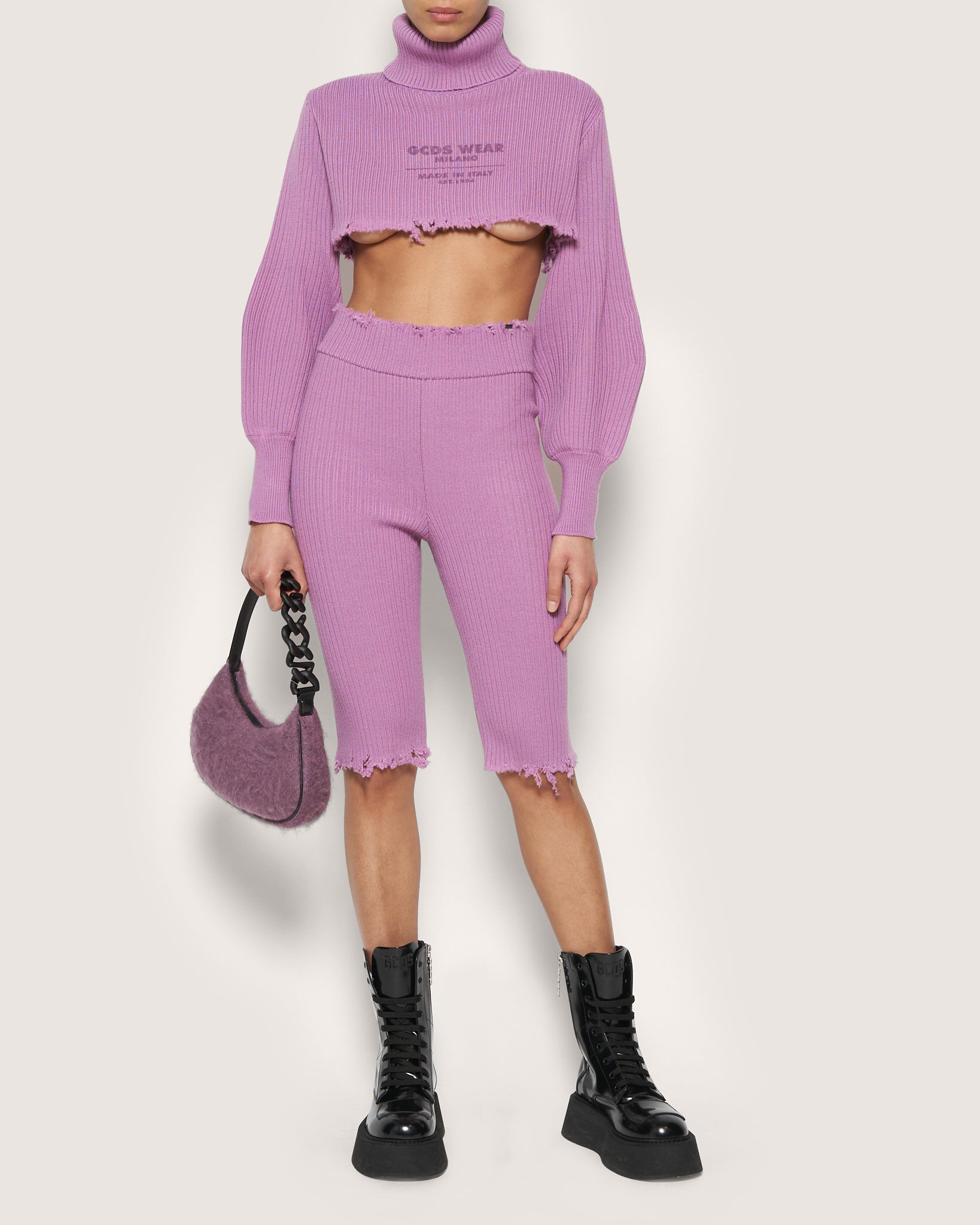 Skip to contentGCDS baguette bag, with mohair needled mezzaluna, with maxi logo chain in ABS on the handle.