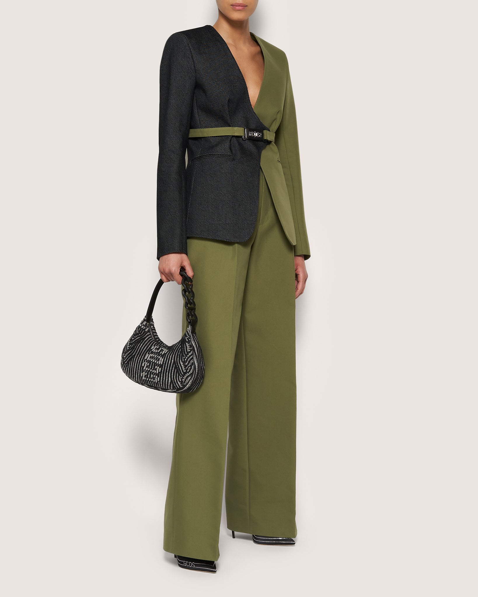 GCDS baguette bag with vanisè braid knitted mezzaluna with logo. ABS maxi logo chain on the handle.