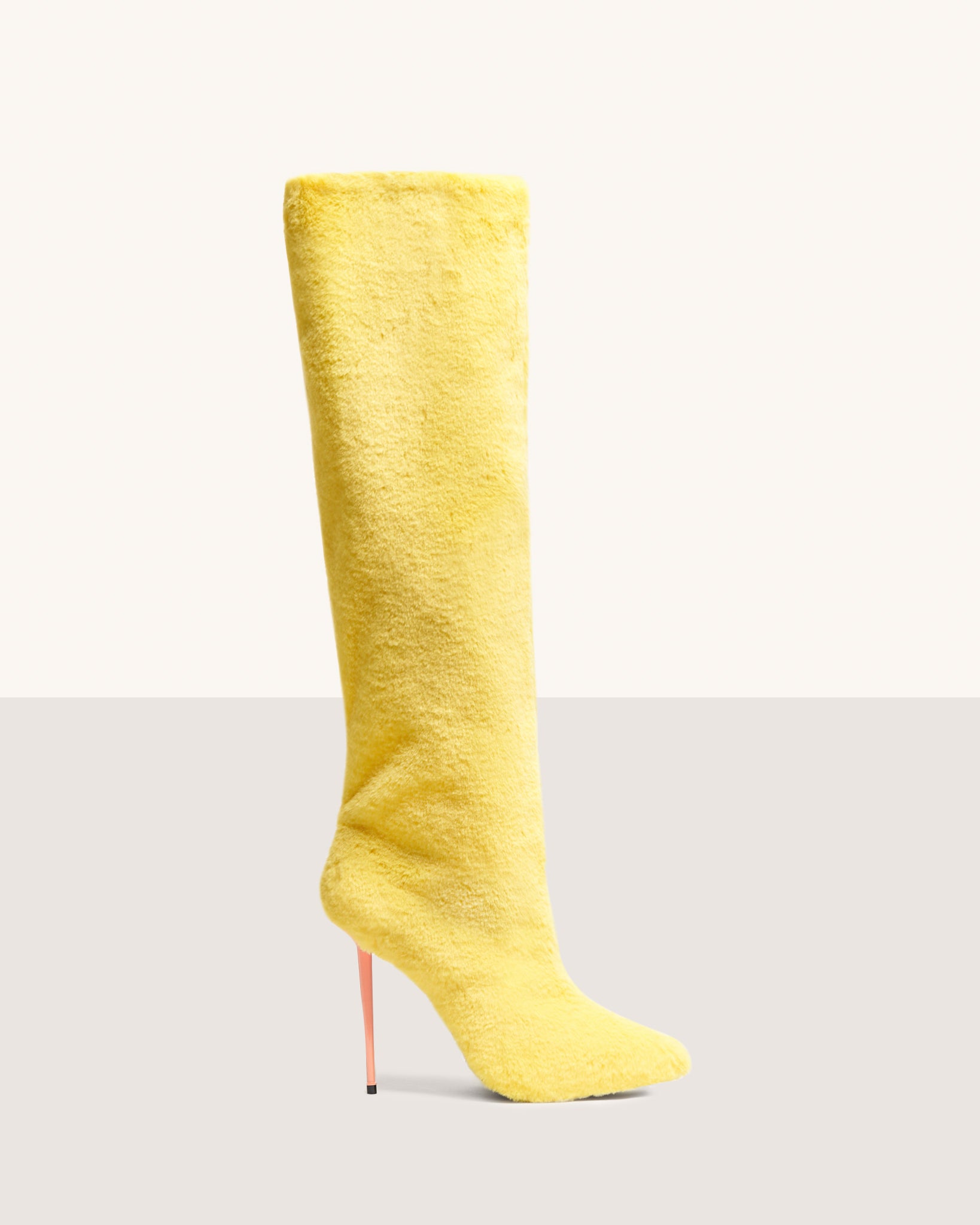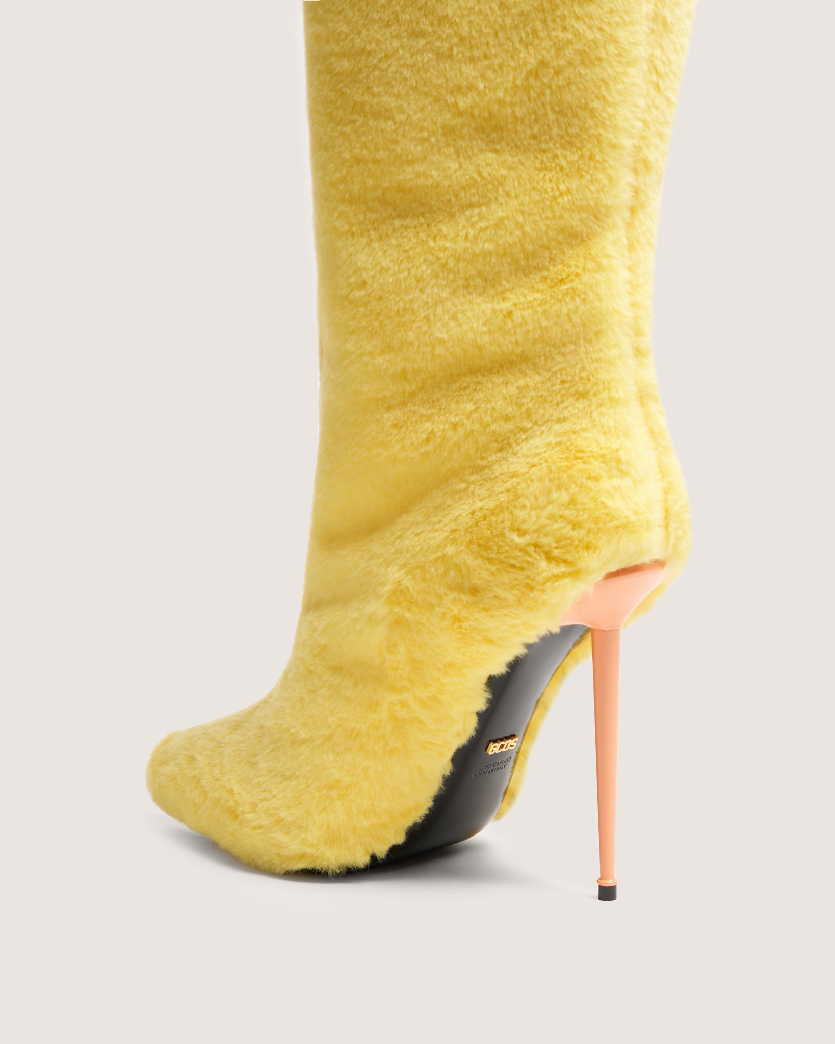 Soft faux leather stiletto GCDS ankle boot. Internal micro plateau provides comfort while walking. Knee-height. Tube Fit.