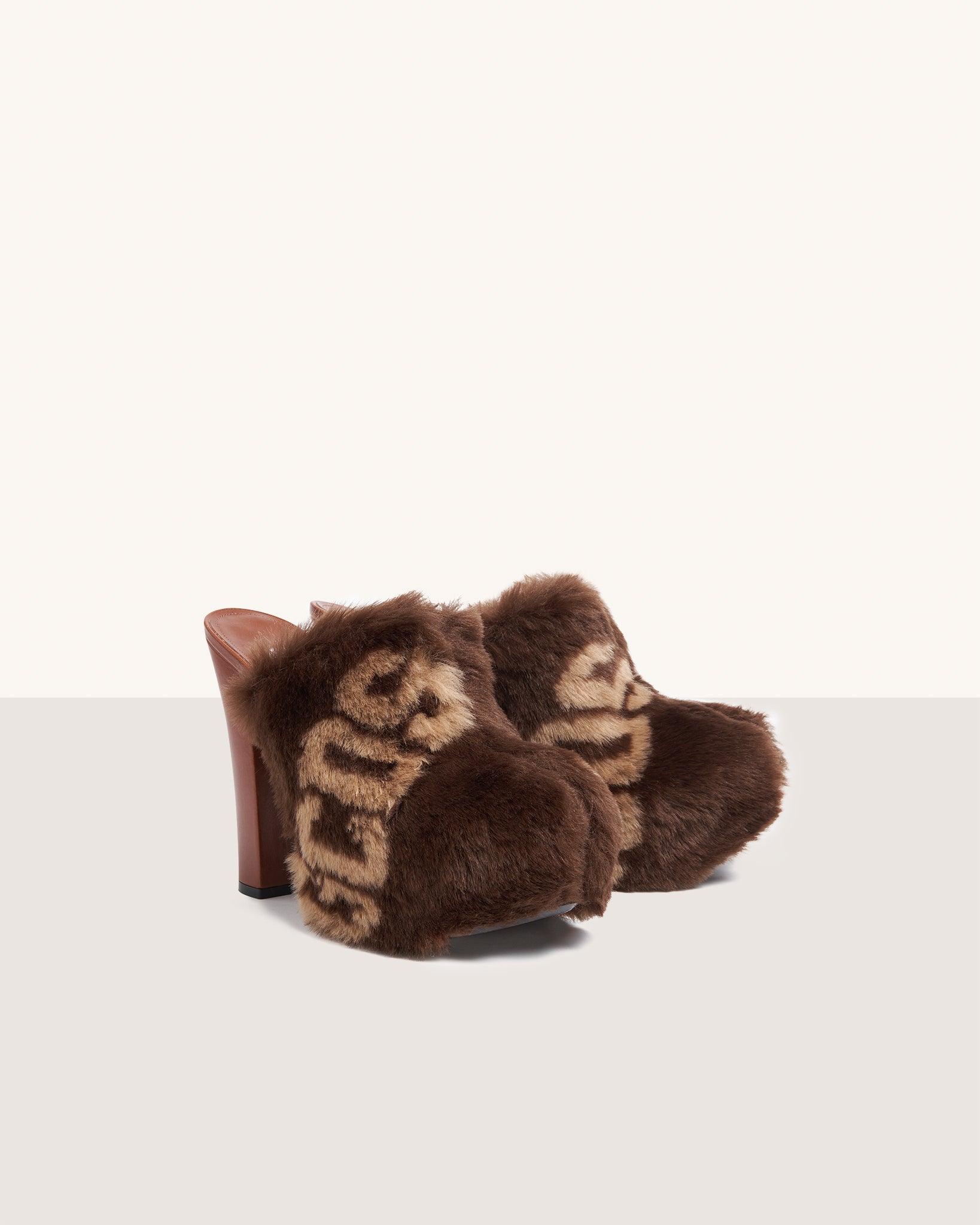 Platform faux fur GCDS clog, maxi logo chain on the front.