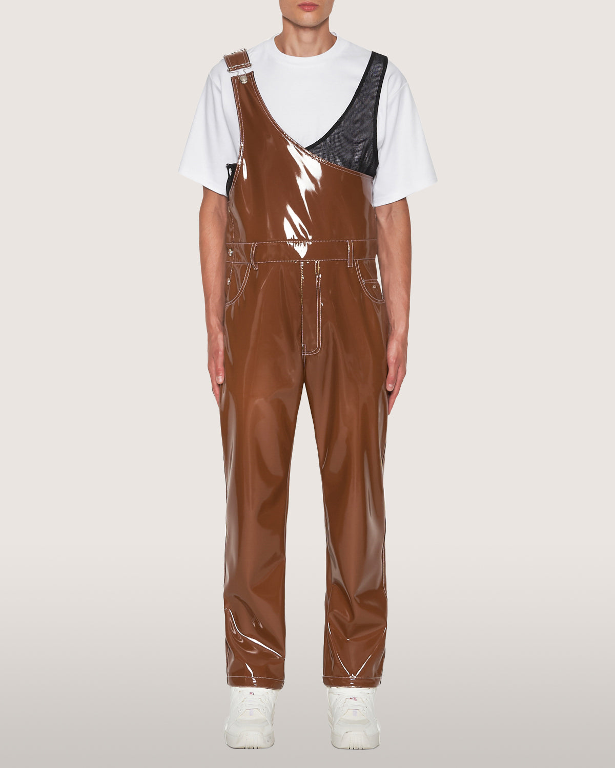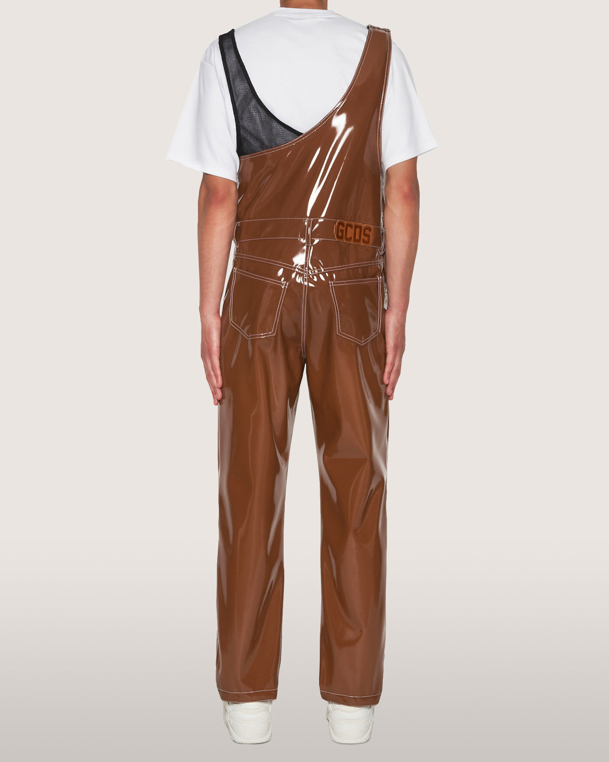 Glossy vinyl dungarees with GCDS patch on the back.