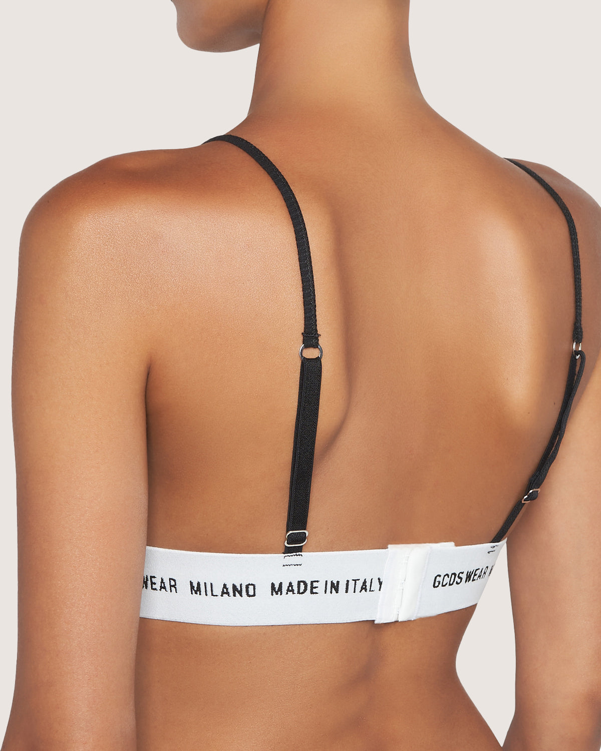 Triangular top in cotton rib knit with Gcds Wear logoed elastic at bottom.