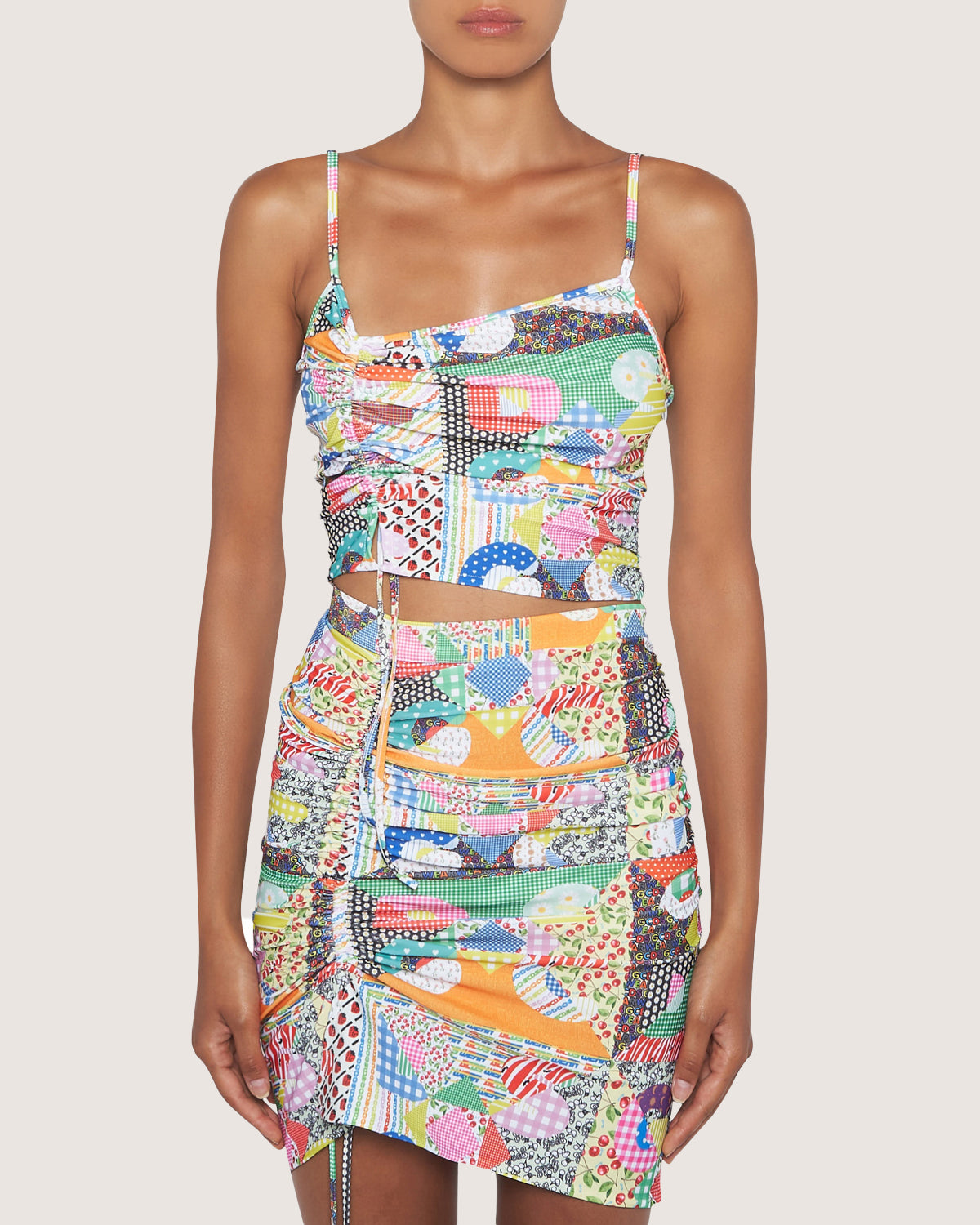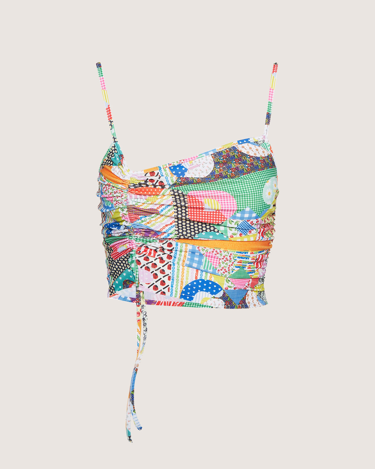 Drawstring top with patchwork pattern