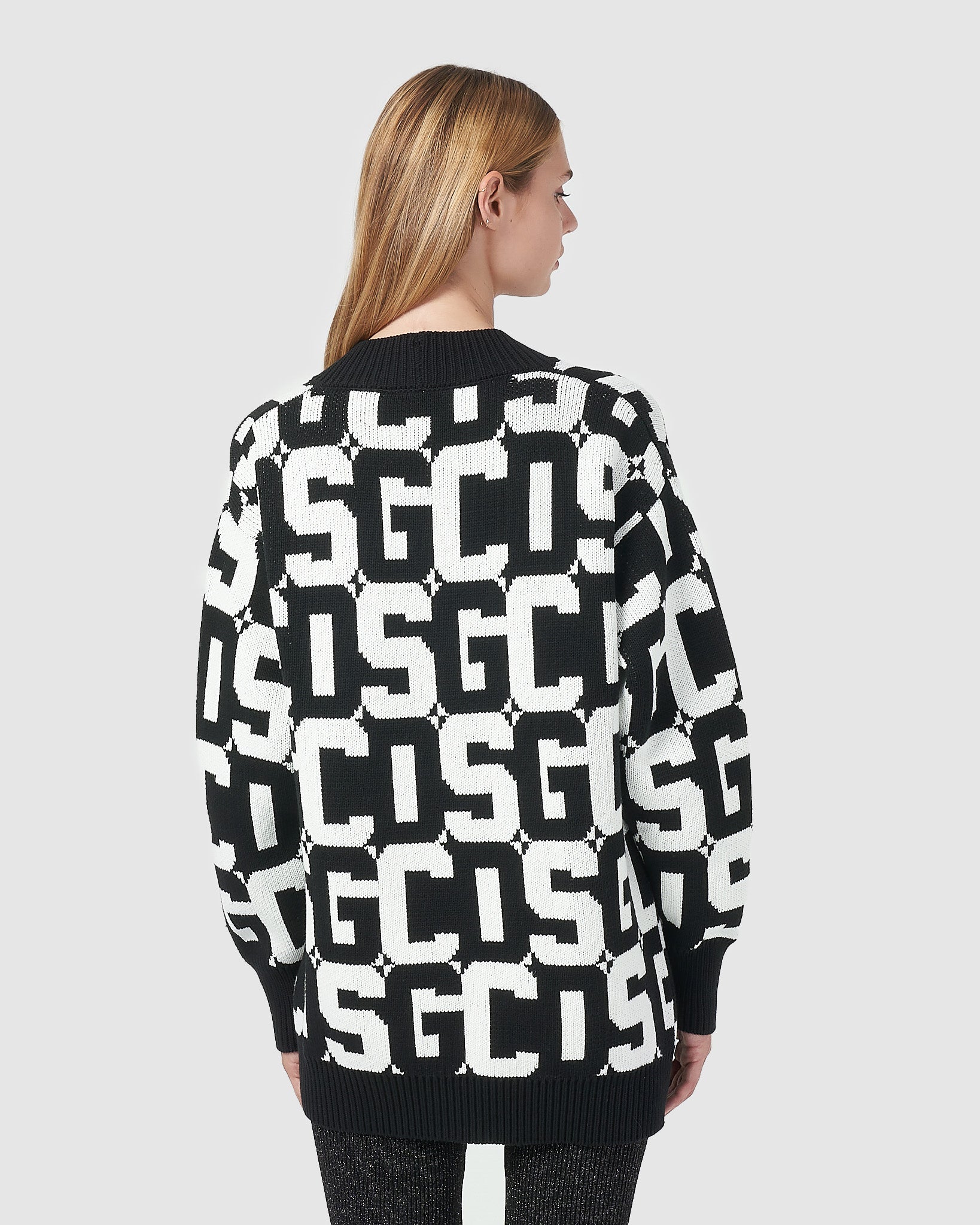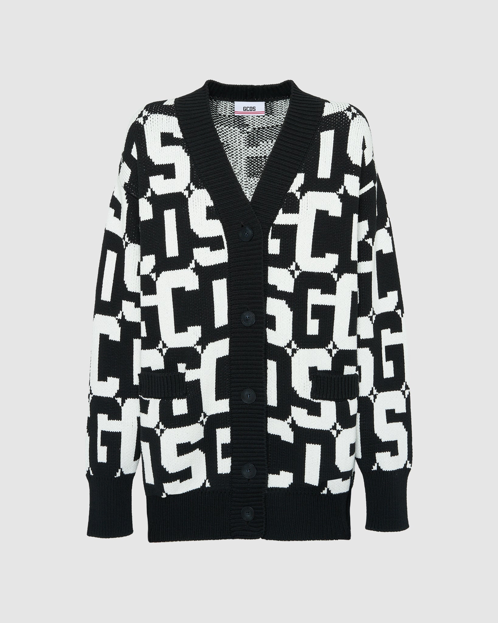 GCDS mixed viscose and cotton cardigan. All-over jacquard monogram pattern. Pockets on the front. Regular fit.