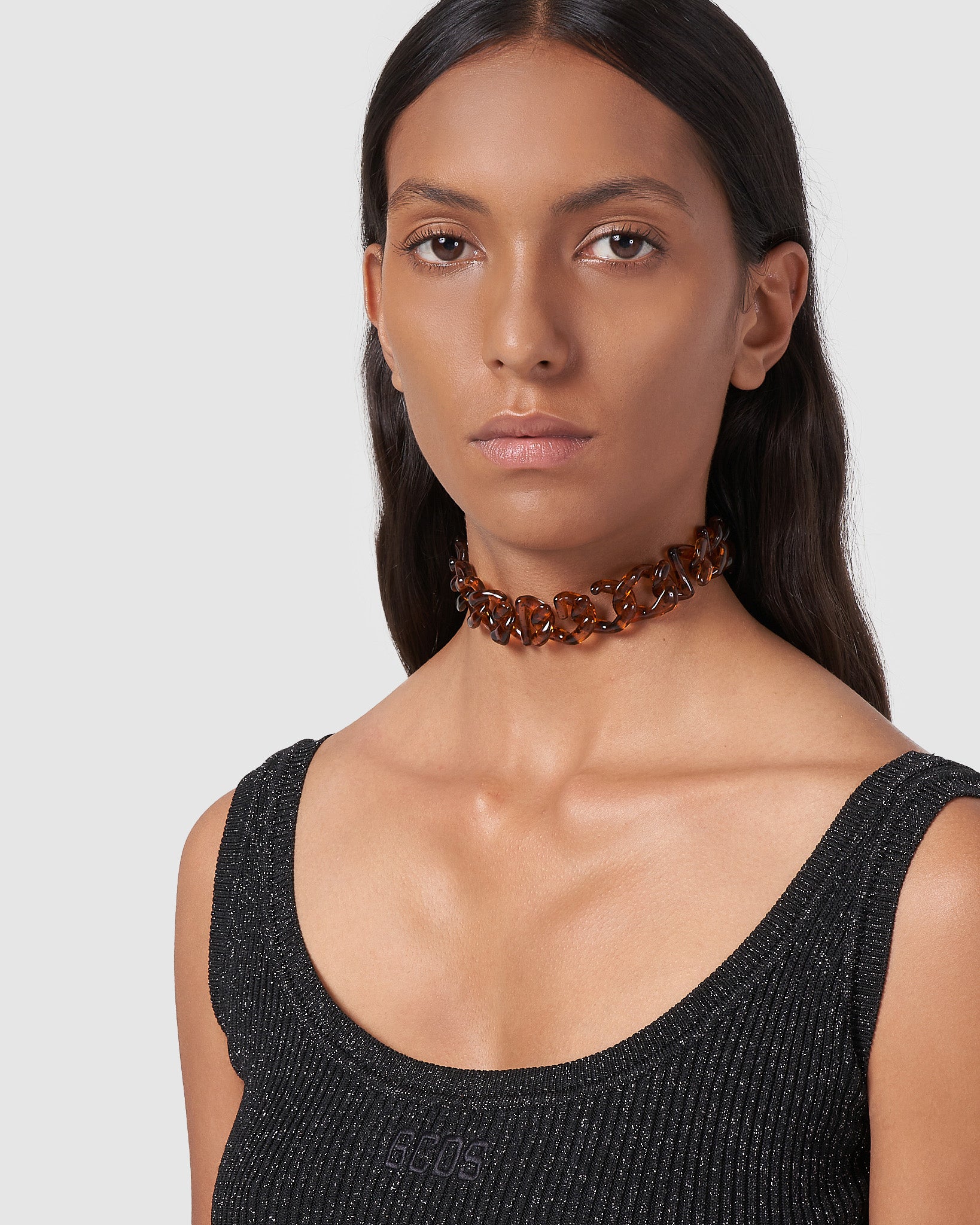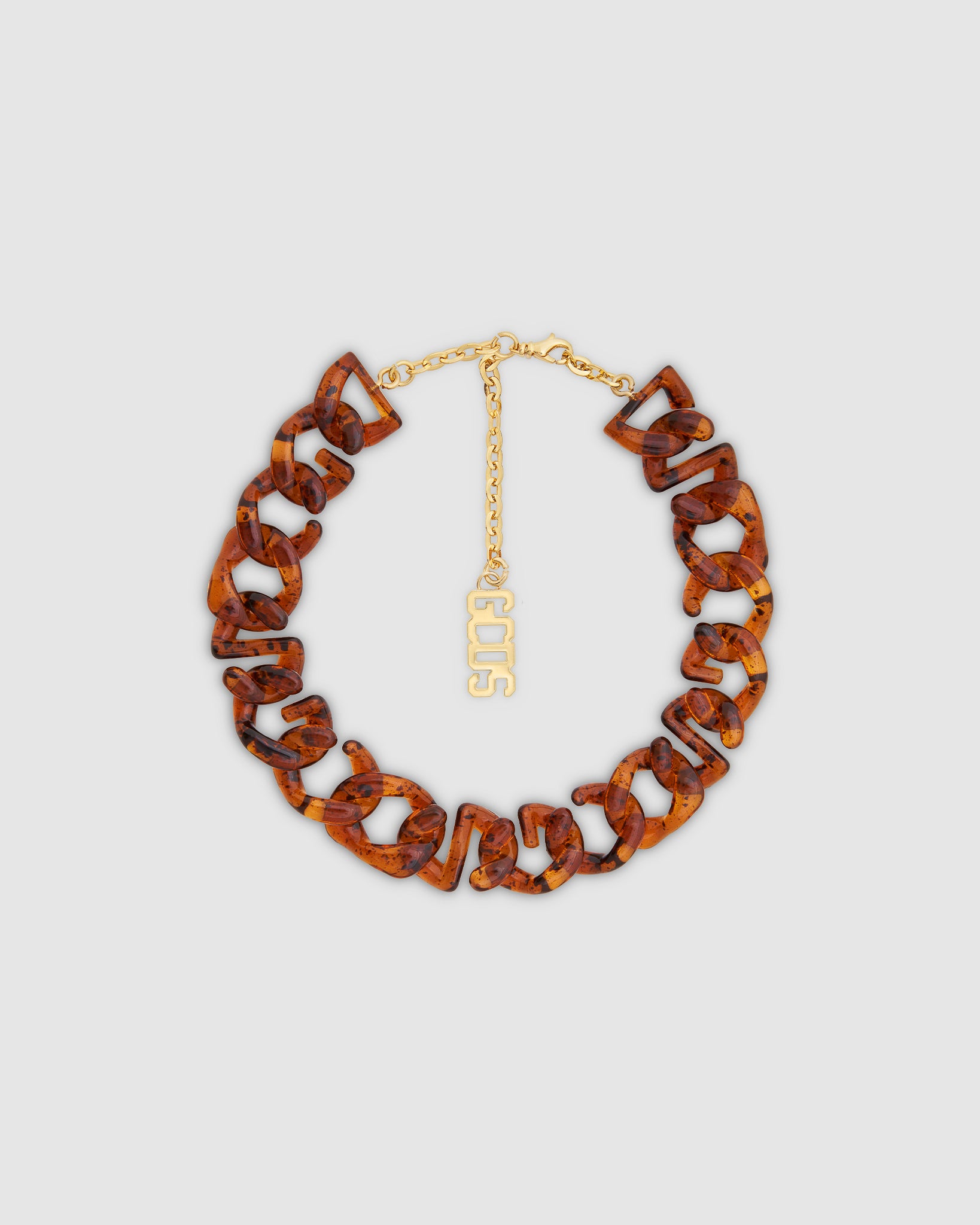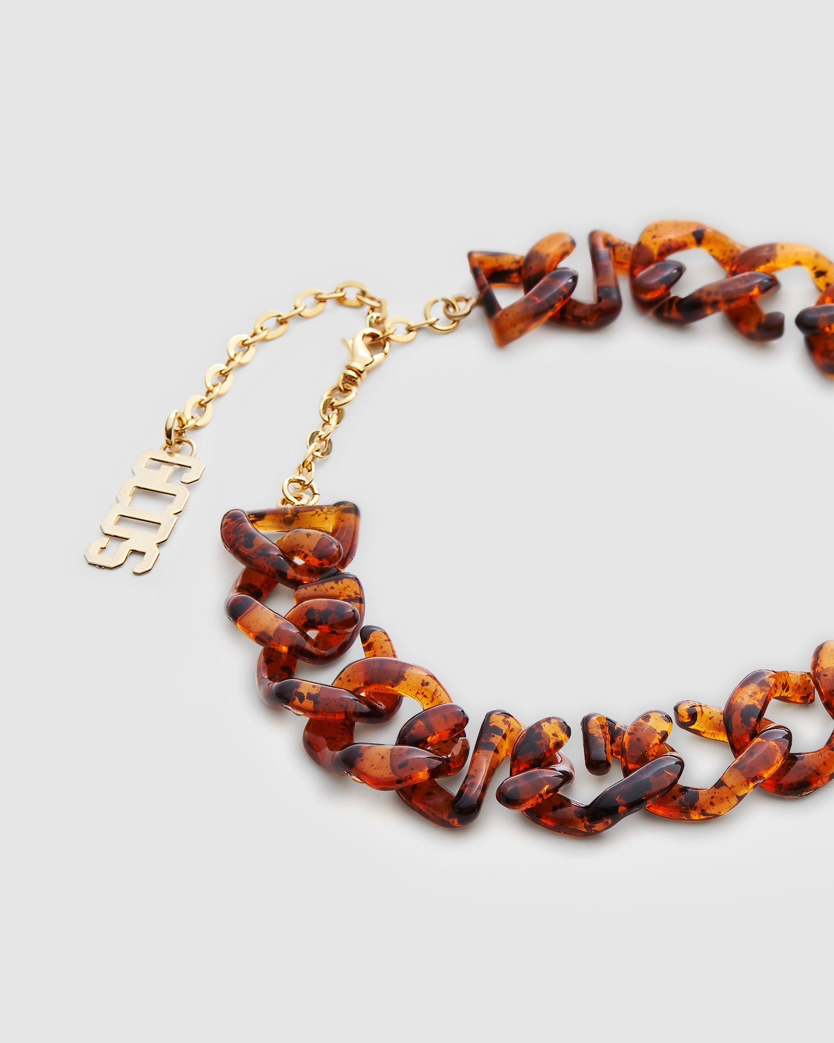 GCDS choker with tortoiseshell acetate logo chain. Closure with polished gold finish and logo plate.
