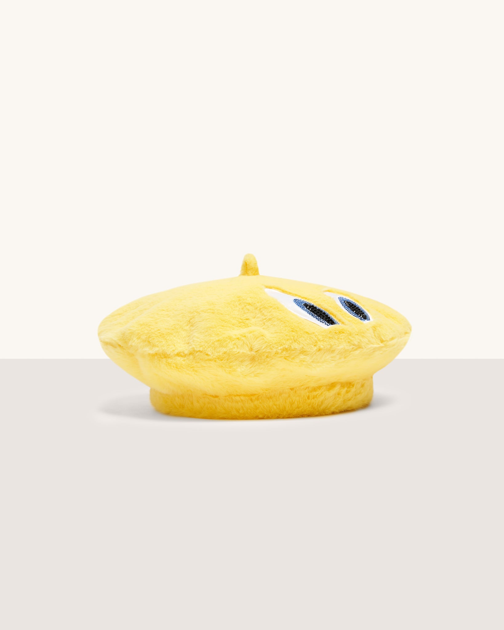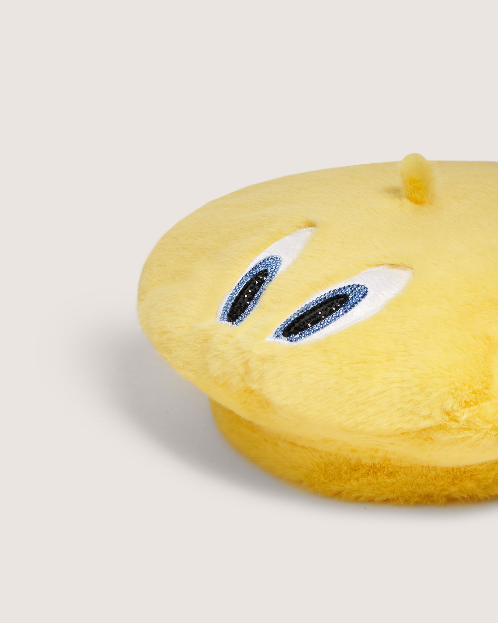 Faux fur GCDS Beret with rhinestones Tweety embroidered patch, part of the Looney Tunes collection.